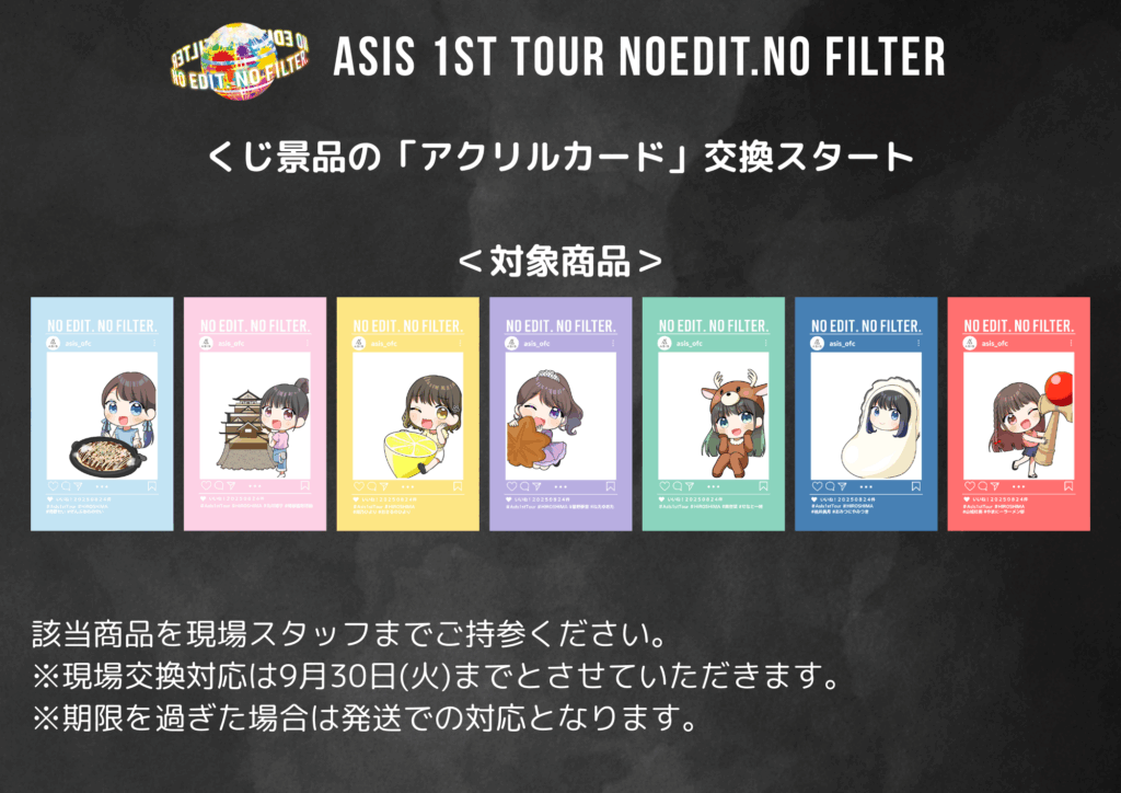 なお、『AsIs 1st TOUR -NO EDIT. NO FILTER.-』はスタンド花の受け取りのみとさせていただきます。