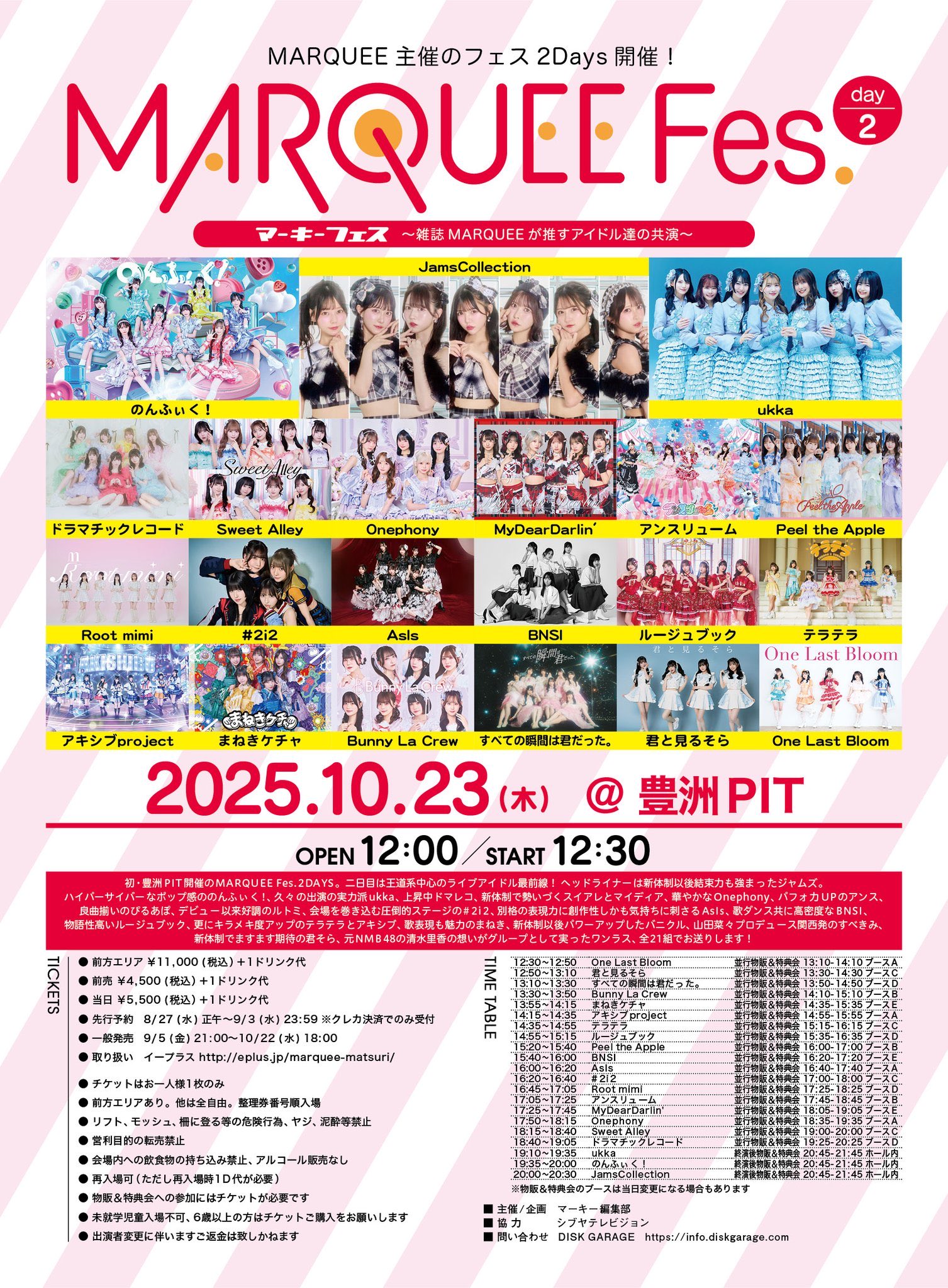 MARQUEE Fes. 日程:2025年10月23日(木) 会場名:豊洲PIT URL:https://eplus.jp/sf/word/0000131445 【時間】OPEN 12:00/START 12:30 【ライブ】16:00-16:20 【特典会】16:40-17:40(A) 【チケット】前方 11,000円/前売 4,500円/当日 5,500円(各+1D) 【指名入場特典】サイン付きチェキ AsIs、MARQUEE Fes.で豊洲PITに立ちます💐❤️🔥 1人でも多くの方にAsIsを知っていただきたいです! お楽しみにっ!🥰