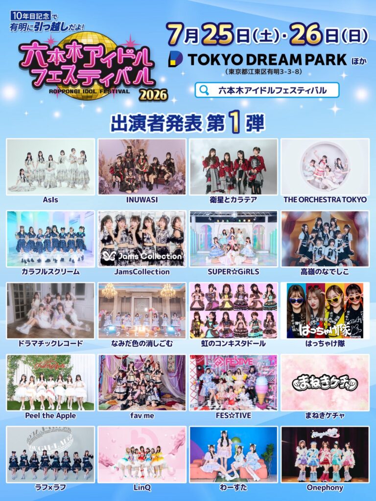 「10年目記念で有明に引っ越しだよ!六本木アイドルフェスティバル2026」出演決定!