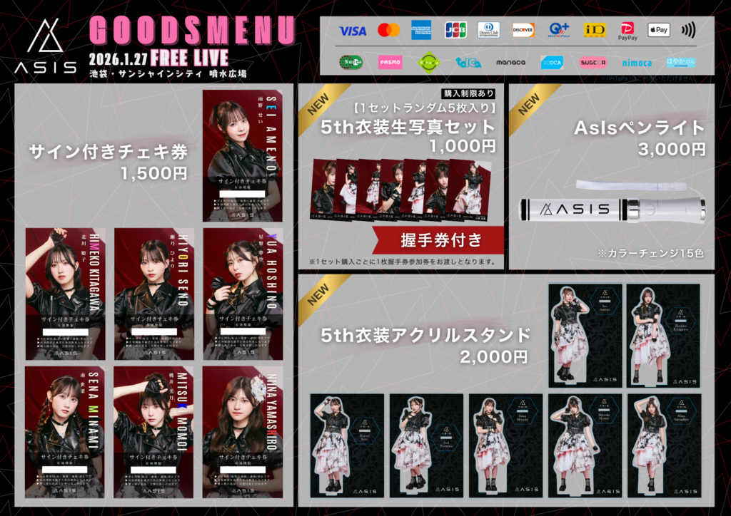 その他グッズ(サイン付きチェキ券、ペンライト、アクリルスタンド)には握手券は付きません。