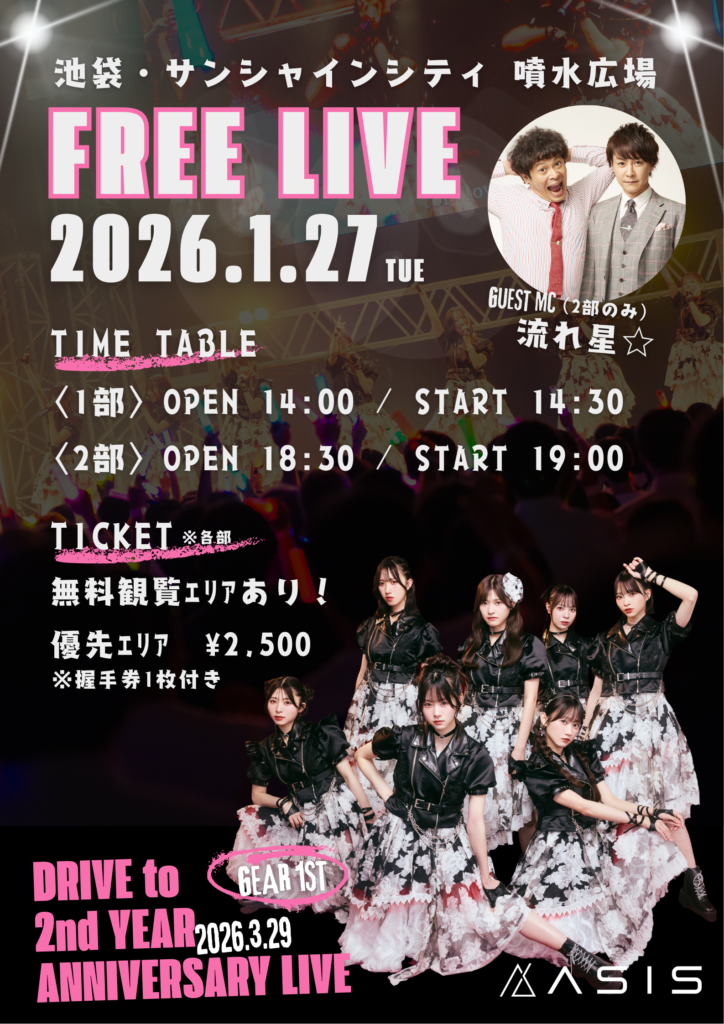 池袋・サンシャインシティ噴水広場”” FREE LIVE 決定‼️ゲストMCに流れ星☆!さらに新曲披露も…