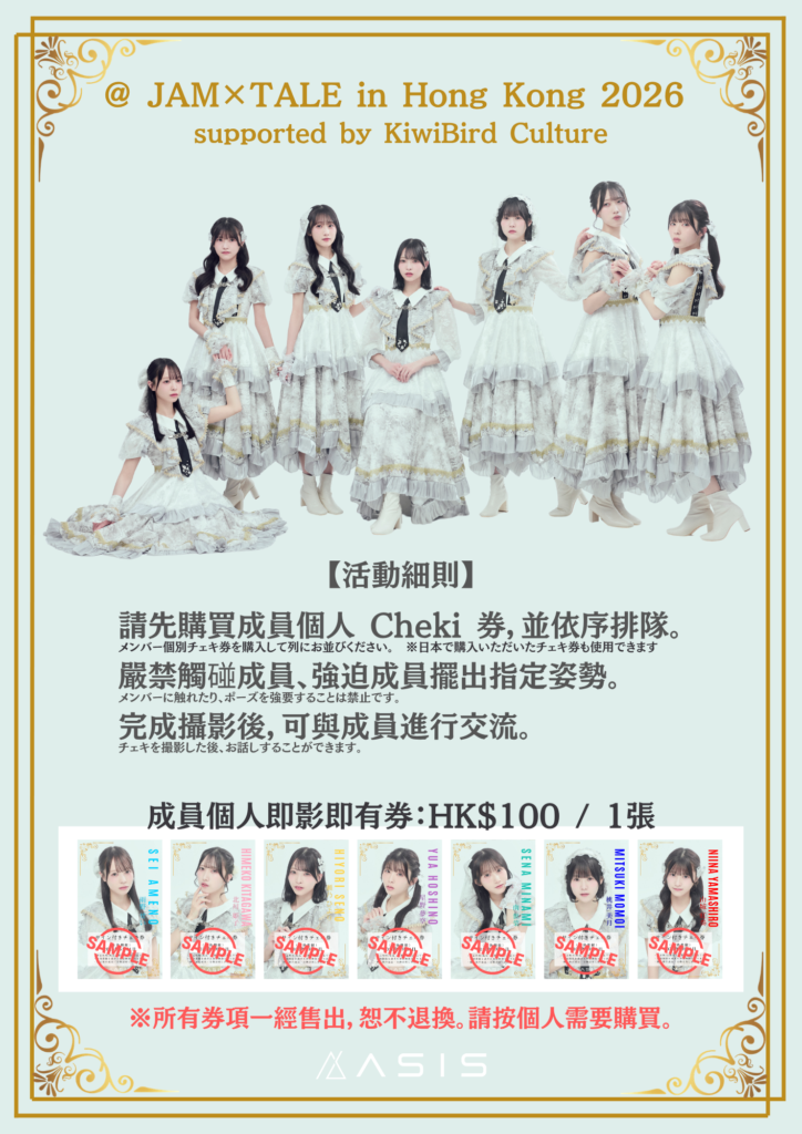 「@JAM×TALE in Hong Kong 2026 supported by KiwiBird Culture」特典會活動,詳情如下: