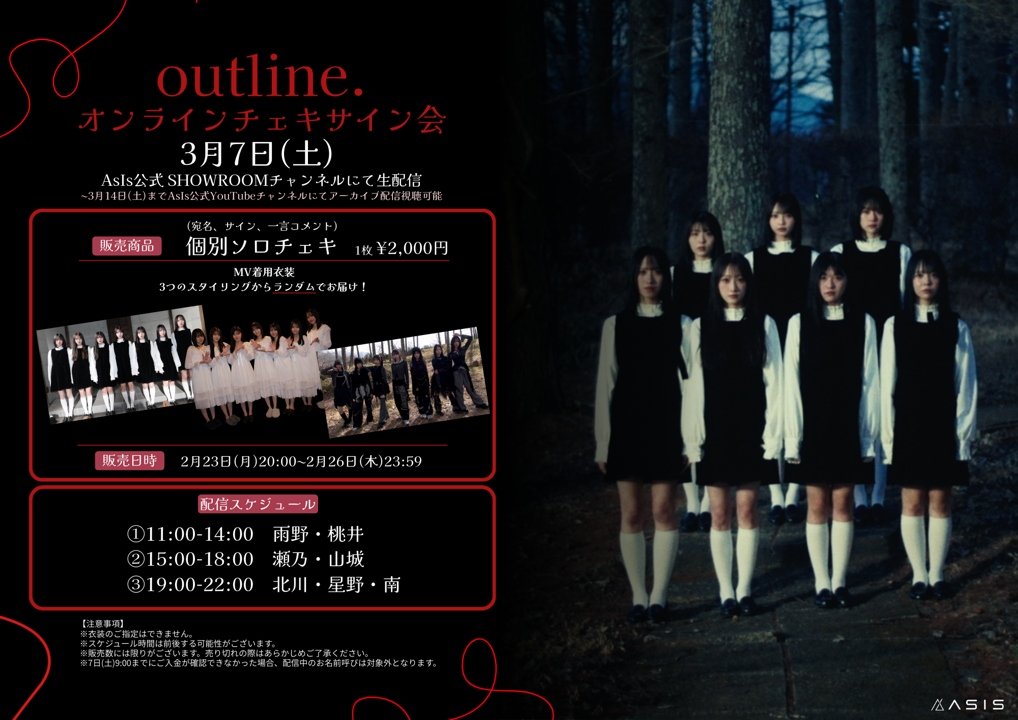 【outline.MV衣装 オンラインチェキサイン会開催のお知らせ】